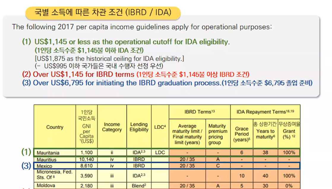 원조의 규모는 금융기관(IBRD, IDA, IFC)이 크다.